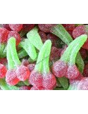 Ingrédients: Sirop de glucose, sucre, eau, gélatine*, amidon modifié de pomme de terre, acidifiants E296, E330, E270, arôme artificiel, agents d'enrobage Monostéarate de Glycéryle (Ex Sunflower, E471), Huile végétale, colorants E100, E129, E133.